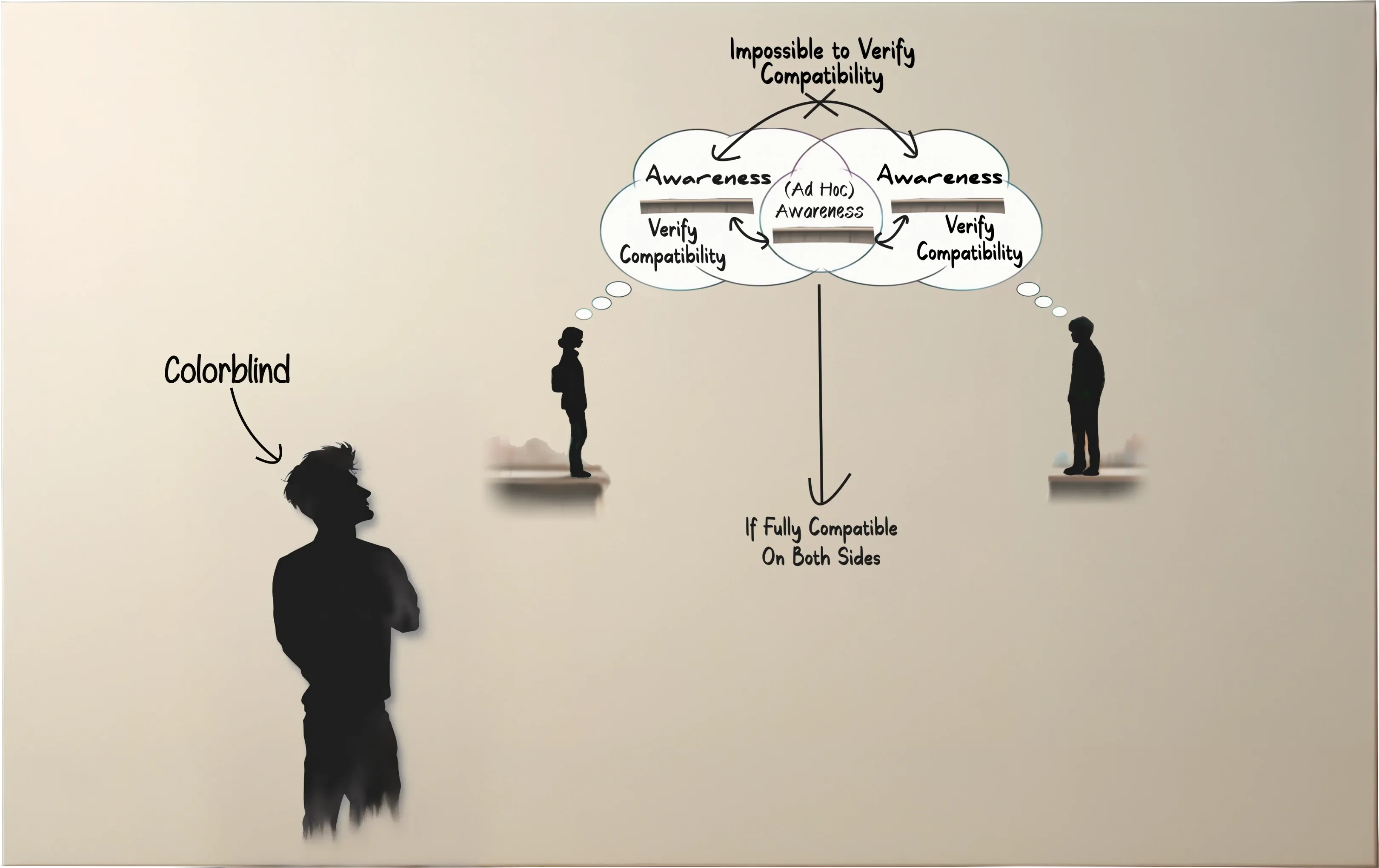 The first thing to point out is that full compatibility doesn’t depend on high linguistic accuracy — nor does it require our conceptual understanding of awareness to be grounded in some sort of accepted reality by other people. As long as our ad hoc concept is compatible both with your understanding of awareness as well as mine, we’re ready to bridge that gap — regardless of whether we actually know what we’re talking about. Here’s an example using the privacy concept to make this a little less abstract: