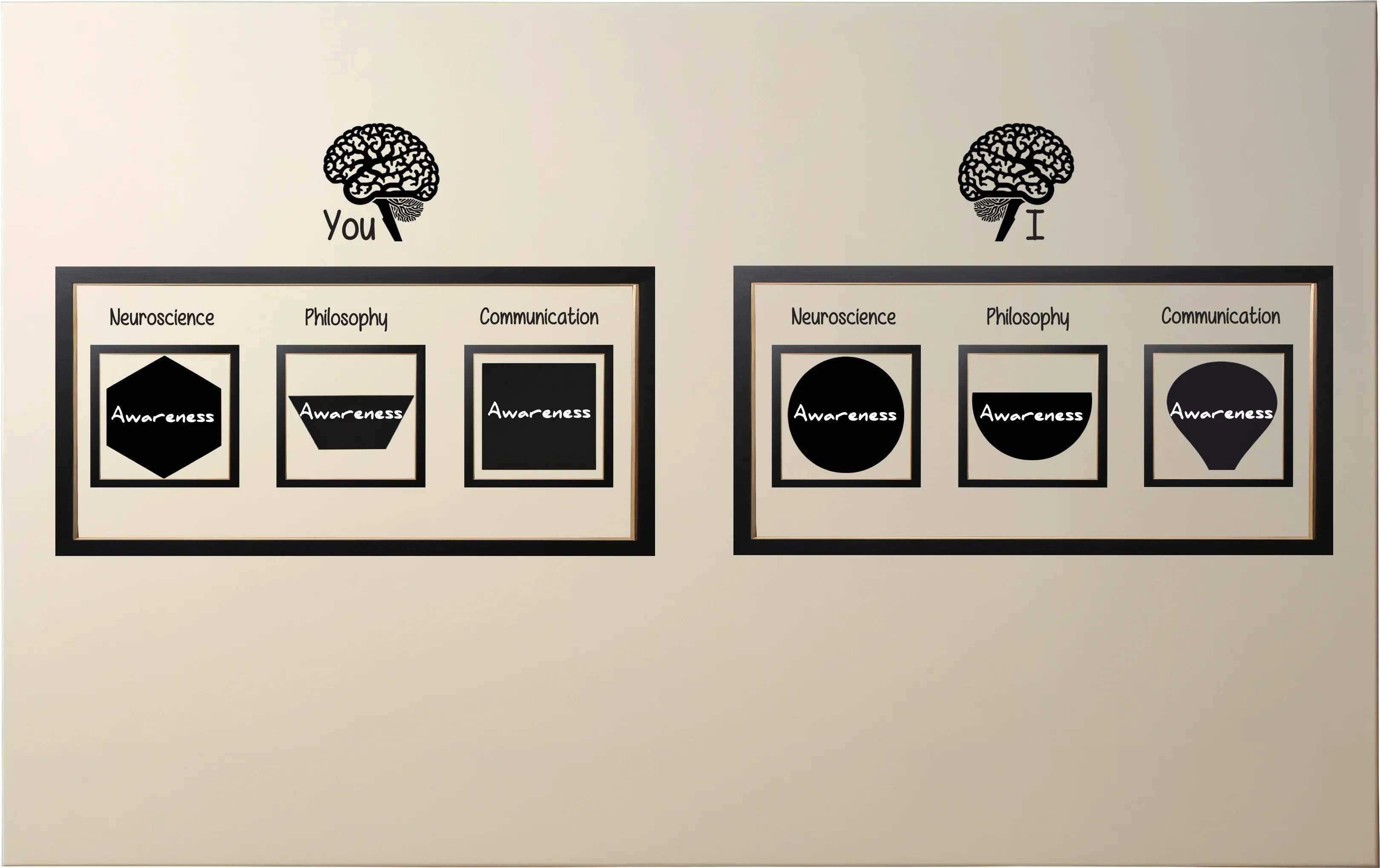Now, you might wonder: shouldn’t Neuroscience, Philosophy and Communication be framed in different shapes (or colors) as well? After all, they’re probably not exactly the same either — depending on whether the perspective is yours or mine. And of course, You and I are obviously different, making it clear that the context isn’t the same, right?